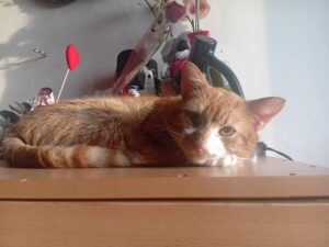 Pobyt v byte mu nerobí žiadne problémy, hneď sa prispôsobil, nabehol na režim, znáša sa s mačičkou v dočaske a miluje domáceho psíka.
